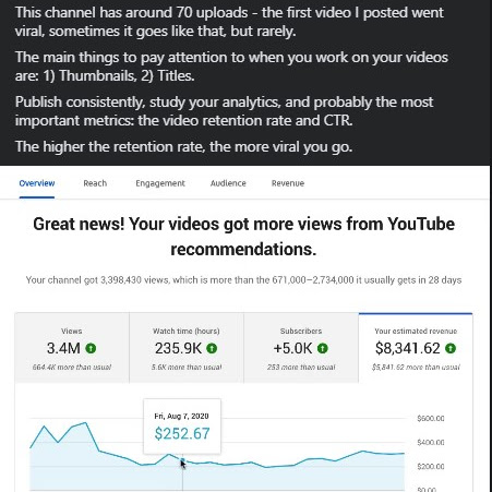 This might not seem a lot, but if you consider making 100 videos with 5,000 views each, that would already be $1,000-$2,000. That would be a decent amount of money.